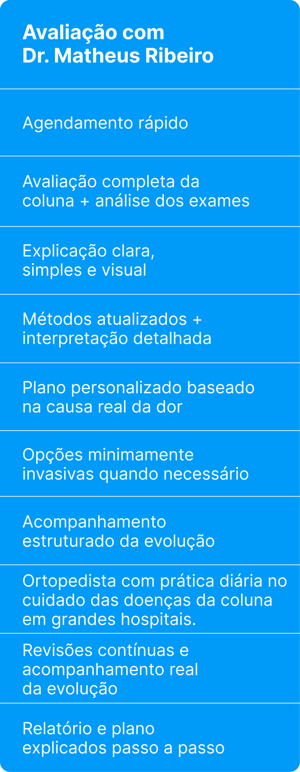 Comunicação clara, condutas baseadas em evidência e foco absoluto no que realmente melhora sua qualidade de vida.